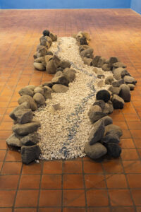 La obra Bastón Yoruba de Aimée Joaristi, parte de su serie Cayados 8784. Es una profunda reflexión artística sobre la salud y el bienestar, alineada con el ODS 3: garantizar una vida sana y promover el bienestar para todos en todas las edades. Este bastón, elaborado en cerámica y evocando los utilizados en la religión Yoruba, no solo representa un objeto de apoyo físico, sino también un símbolo cargado de significado personal y colectivo.