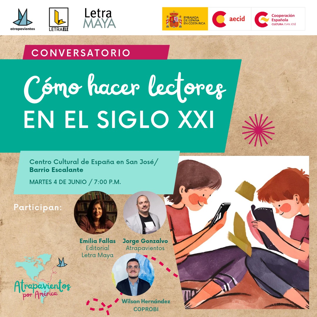 En esta actividad generaremos un dialogo en el que proponemos intentar llegar a alguna conclusión, o no, sobre la lectura, los hábitos lectores y la formación de lectores, escucharemos con mucha atención lo que nos tienen que contar quienes están apostando por la lectura como herramienta fundamental para la educación. Participan Jorge Gonzalvo de Atrapavientos y Emilia Fallas de Editorial Letra Maya