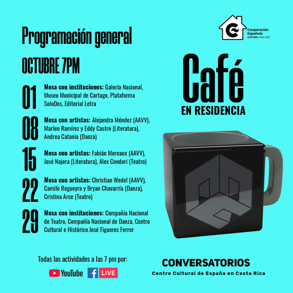 Café en Residencia es un conjunto de conversatorios en los cuales hablaremos con las y los protagonistas de las Residencias Artísticas en Casa.