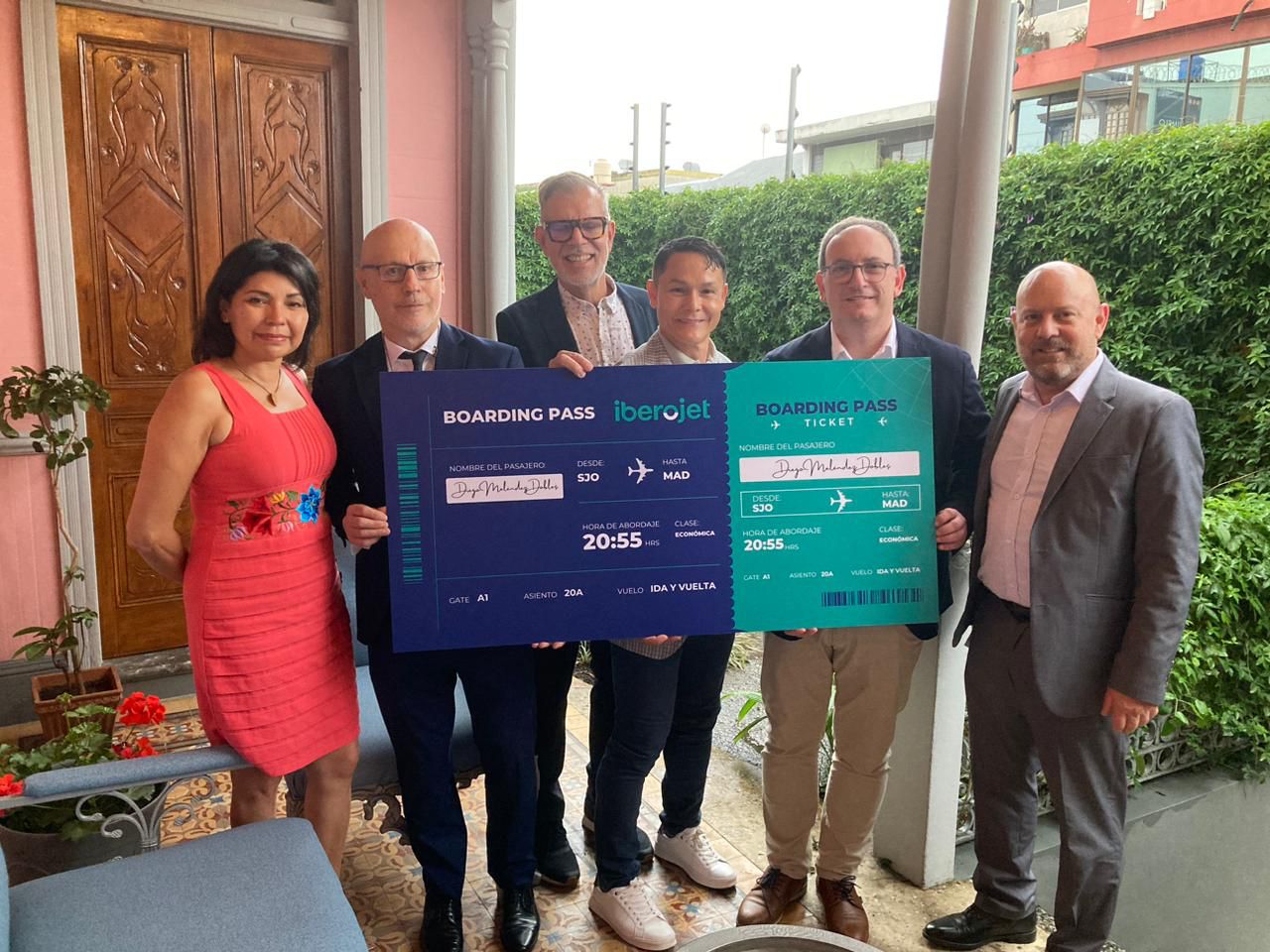 El acto de entrega del premio, dos tiquetes aéreos San José-Madrid-San José, cortesía de IBEROJET como aerolínea patrocinadora, tuvo lugar el miércoles 20 de marzo a las 3pm en la casa habitación del ganador, ubicada en San José, en Avenida 9 y calle 3.