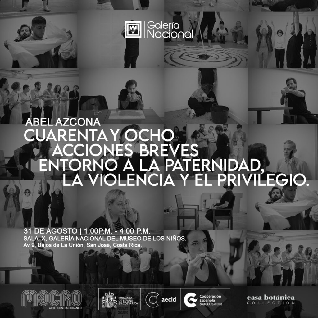 En el marco de la exhibición «ABEL AZCONA | MATAR AL PADRE», encontramos un momento íntimo, violento y performativo: mediante cuarenta y ocho acciones el artista convierte el espacio museístico en un lugar de resolución de obras y procesos en torno a la paternidad, la violencia, el colonialismo, la religión y el privilegio.