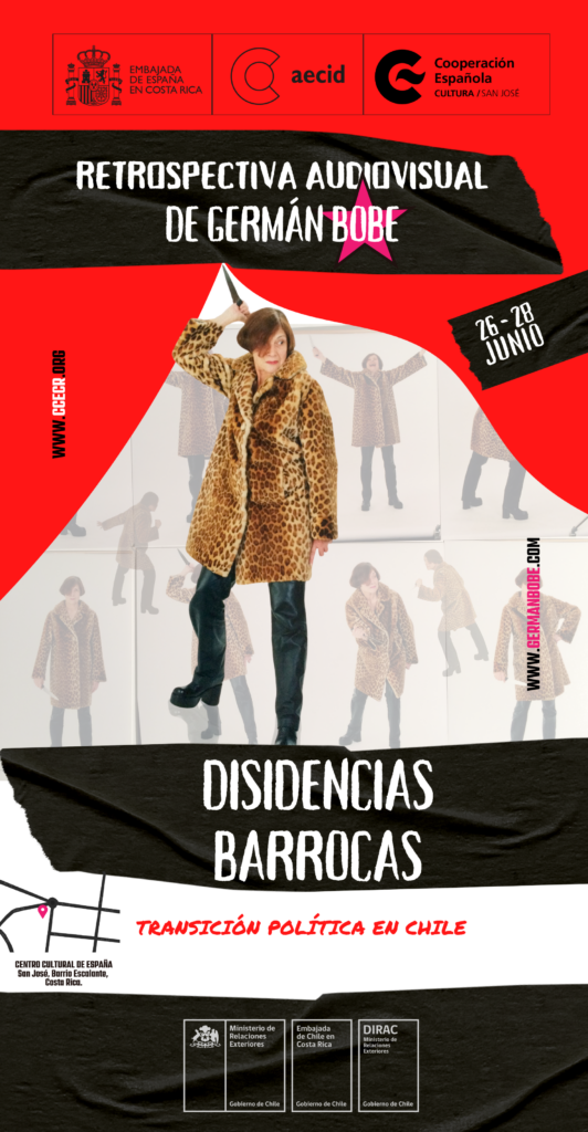Así, el ciclo “Disidencias barrocas y transición política en Chile” tiene el impulso de establecer un recorrido por el trabajo de este creador audiovisual entre los años 1988 y 2024, centrado en su primera década creativa, periodo que marca una etapa inicial de trabajo que dialoga con el contexto social y político chileno y que, a la vez, permite conocer una temprana poética LGBT cuyo mejor ejemplo son la figura de la cantante Cecilia en su último cortometraje “Marcapasos” (2024) y con la bailarina transexual Candy Dubois. Esta artista se construye más allá de las imposiciones de la biología alcanzando un registro mítico pocas veces visto en la historia de la disidencia sexual en Chile. Protagonista indiscutible de la bohemia santiaguina de los sesenta con el Blue Ballet (un cuerpo de baile formados por transformistas), a través de la mirada de Bobe vemos como ella se reactualiza más de treinta años después en el contexto de una escena cultural alternativa que la proclama como una de sus mayores divas.