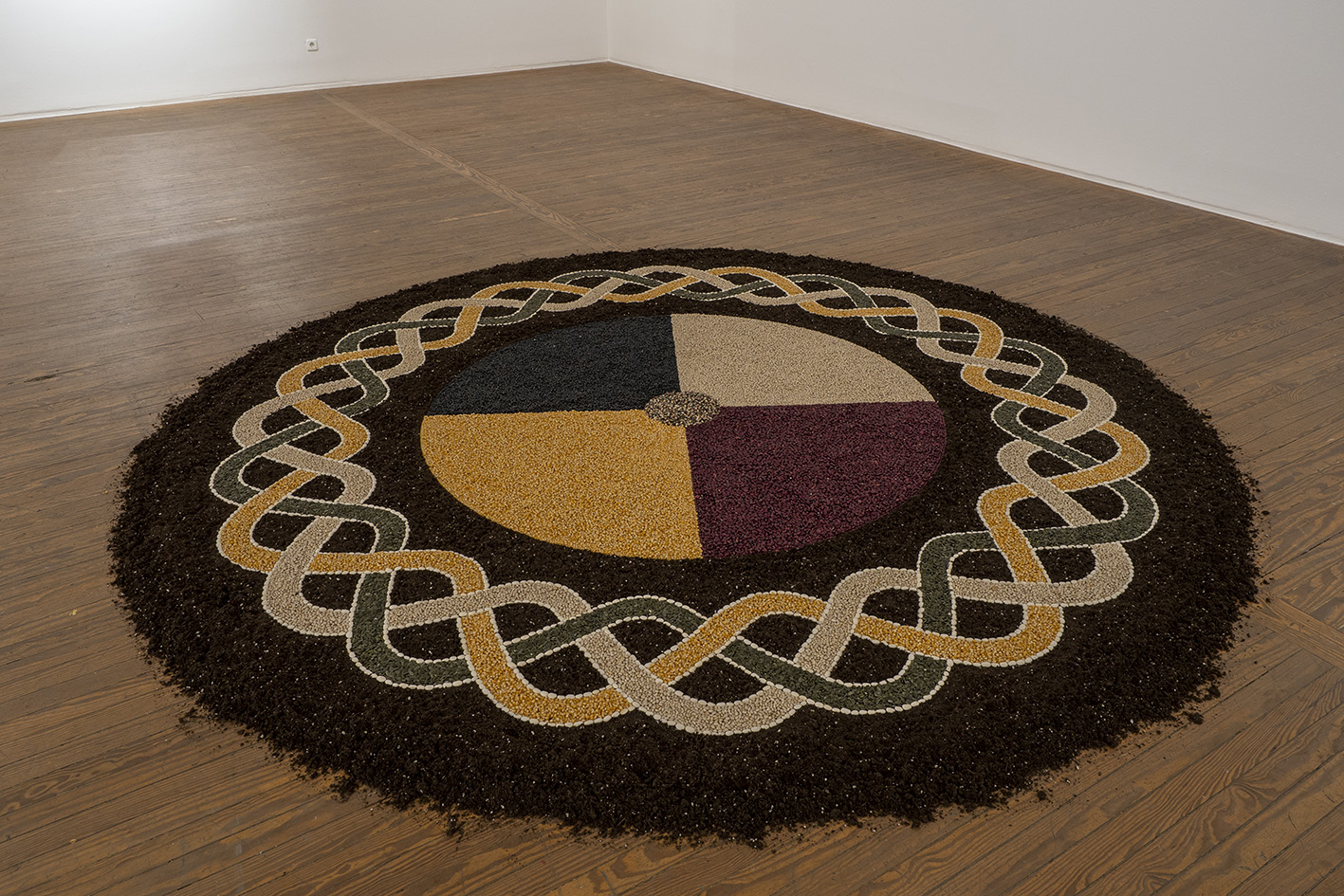 Ficciones, invención o imaginación política, pero también formas concretas de sostener la vida en común. De ahí la recurrencia de materiales (o sus representaciones) como la tierra, el agua, las semillas, o de fluidos como la sangre o la leche. Con barro trabaja Rolando Castellón desde 1981, según una ética y ecología que pone en relación con culturas amerindias, acompañando un así llamado Manifiesto post-colombino: “Barro es la materia que mejor ejemplifica la resistencia de las razas oprimidas en su lucha por la supervivencia”, dice el texto. Y en un poema de Rosa Chávez se lee: “Sudo/ como una olla de barro/ no estoy curada/ me derramo”. La tierra es materia con la que trabajan varios artistas y la base de prácticas ancestrales como la geofagia que Adán Vallecillo ha investigado en Haití. Otras formas o imaginarios de sanación se convocan en esta muestra, desde ciertos rituales, narraciones o palabras, hasta algunos silencios o fugas. En ausencia del término 'arte' en su lengua, Benvenuto Chavajay entiende su hacer como una suerte de “sanador” de la herida colonial.