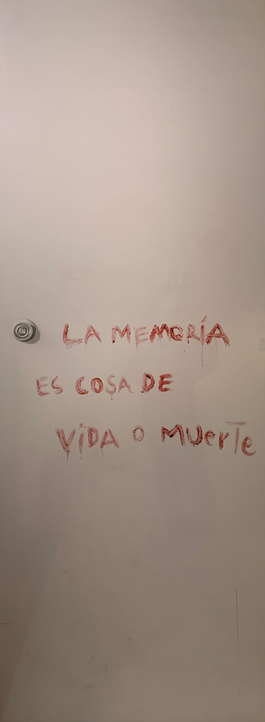 En la zona más antigua de La Habana se encuentra la otrora casa presidencial, hoy Museo de la Revolución. Se conserva allí la puerta que aquel joven grabara con el nombre del líder de la Revolución. Muy cerca, tiene lugar la Bienal de La Habana, evento que invita nuevamente a la artista Priscilla Monge (Costa Rica, 1968). La artista, en su cualidad de turista, se convierte en espectadora activa del espacio visual. De este modo crea nuevas estrategias de significación, con la potestad de dirimir la historia desde la no implicación. Desde ese lugar, Monge enfrentó en La Habana esa (otra)memoria.―Clara Astiasarán