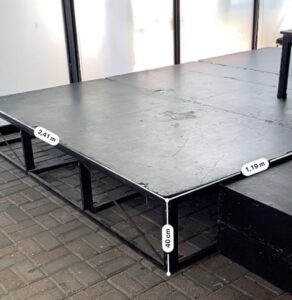 3 tarimas grandes de madera y metal: 2.40mts x 1.90mts x 40cm