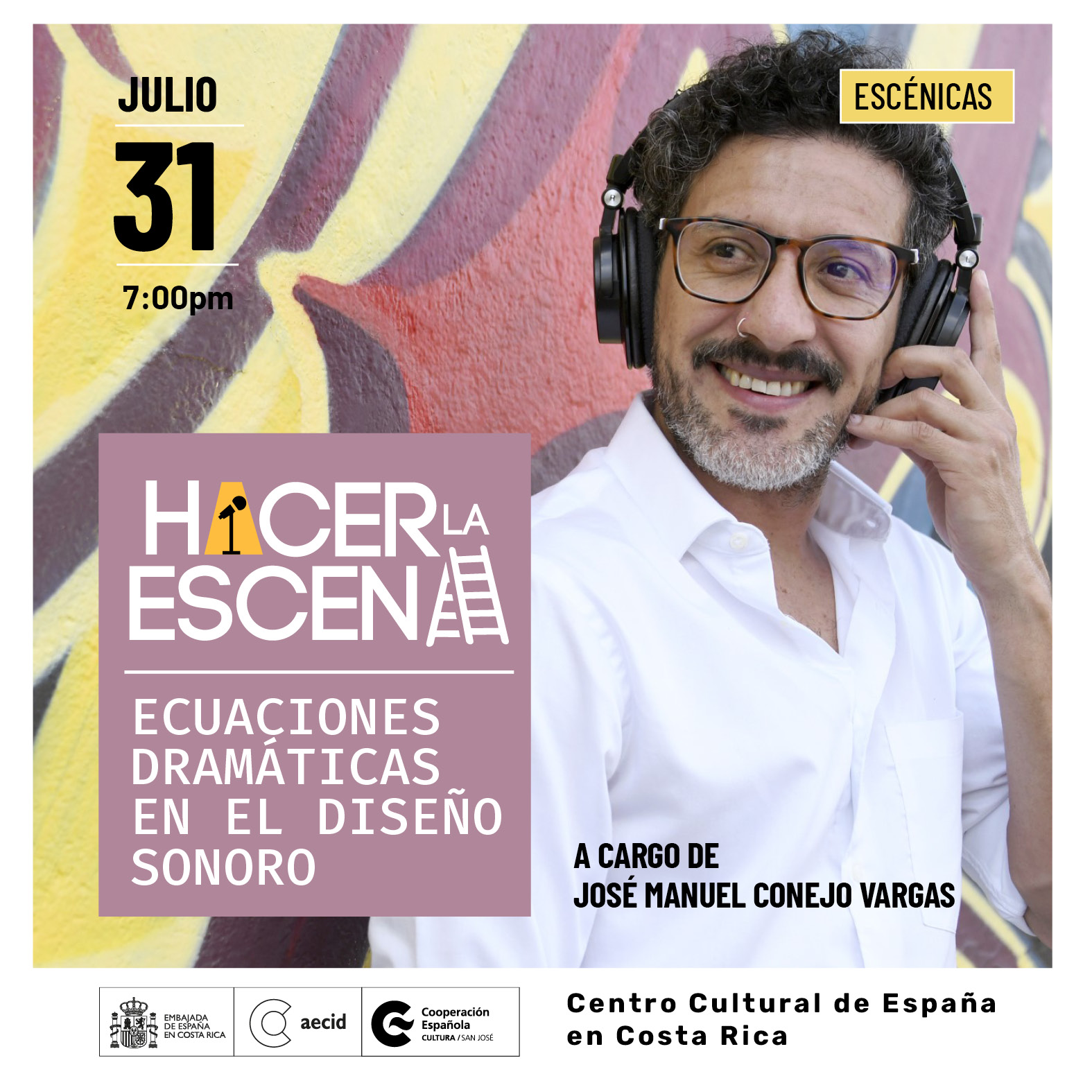 La segunda sesión de Hacer la escena, titulada Ecuaciones dramáticas en el diseño sonoro busca compartir el proceso de creación de espacios y ambientes sonoros que realiza el MFA. José Manuel Conejo. En la actividad conoceremos cómo José Manuel ha diseñado el mundo sonoro de dos espectáculos teatrales y las personas participantes podrán crear el suyo propio.