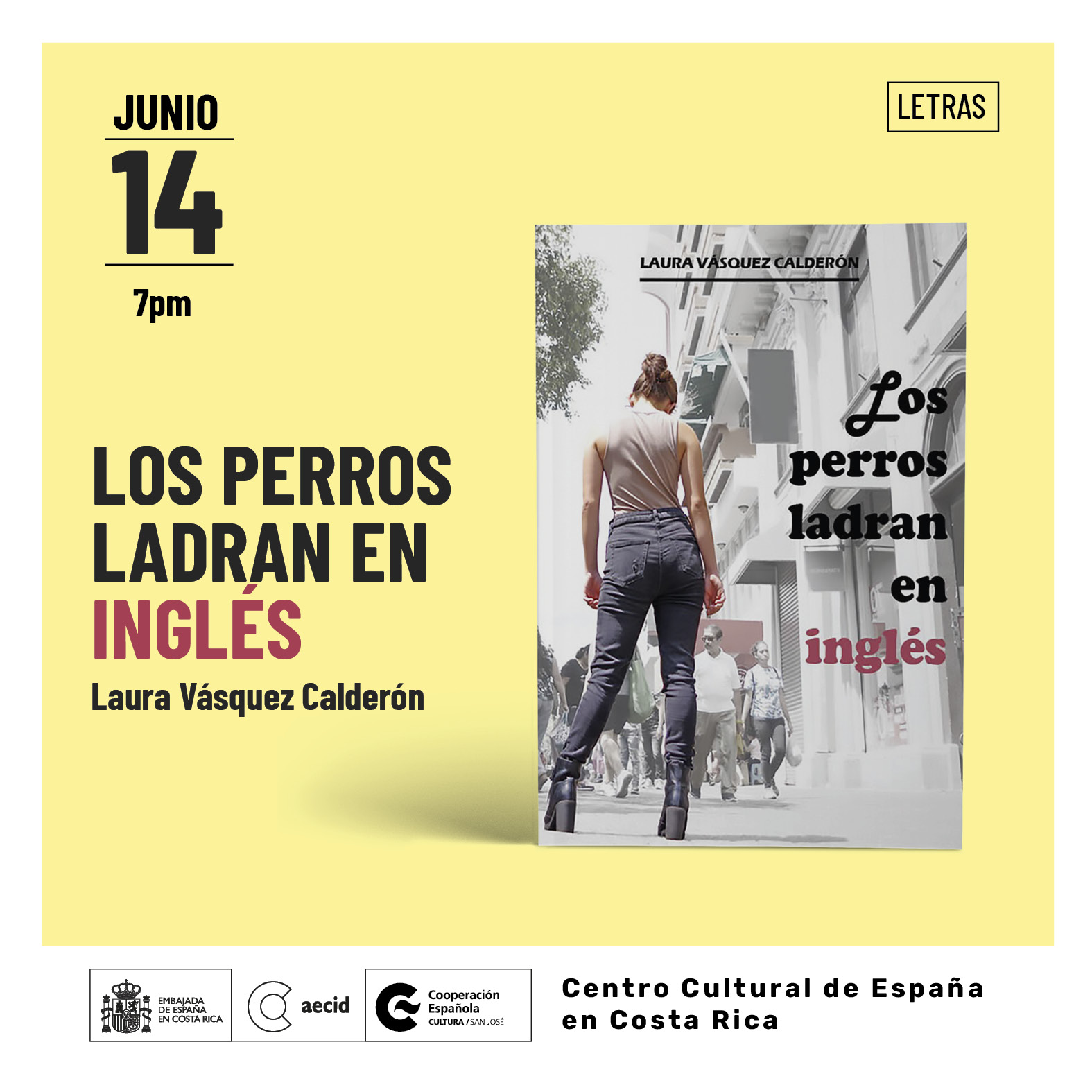 La autora costarricense Laura Vásquez Calderón presentará su nuevo libro “Los perros ladran en inglés” en el Centro Cultural de España el próximo viernes 14 de junio a las 7 pm.