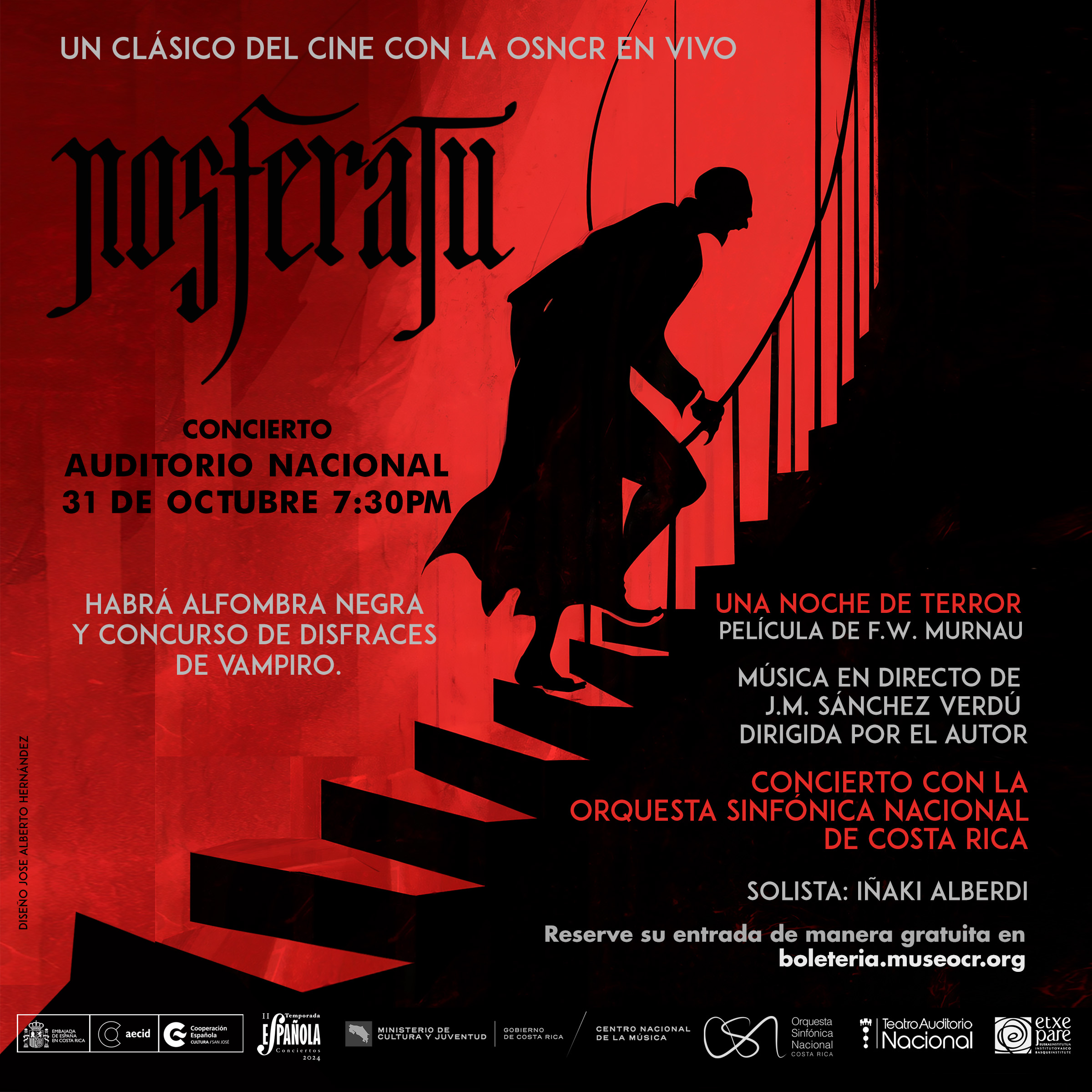 Una noche de terror en el marco de la II Temporada Española de Conciertos en el AUDITORIO NACIONAL, en la que se proyectará el largometraje Nosferatu, del director alemán Friedrich Wilhelm Murnau, quien lo coloreó a mano, fotograma por fotograma; mientras la Orquesta Sinfónica Nacional, con la participación del acordeonista Iñaki Alberdi, como Nosferatu, interpretará, en directo, la música del Mtro. José María Sánchez-Verdú, dirigida por él mismo, e inspirada en la película.