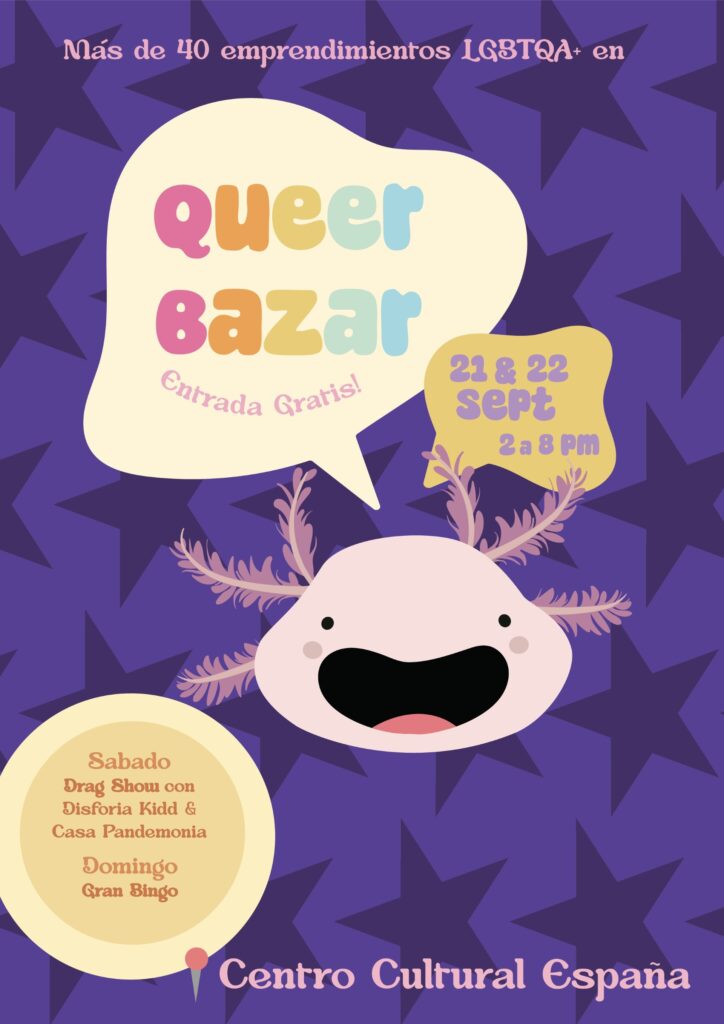 Con más de 40 emprendimientos queer, este bazar es una explosión de creatividad y comunidad, donde encontrarás desde bisutería y stickers hasta productos veganos, maquillaje, decoración, ¡y mucho más!