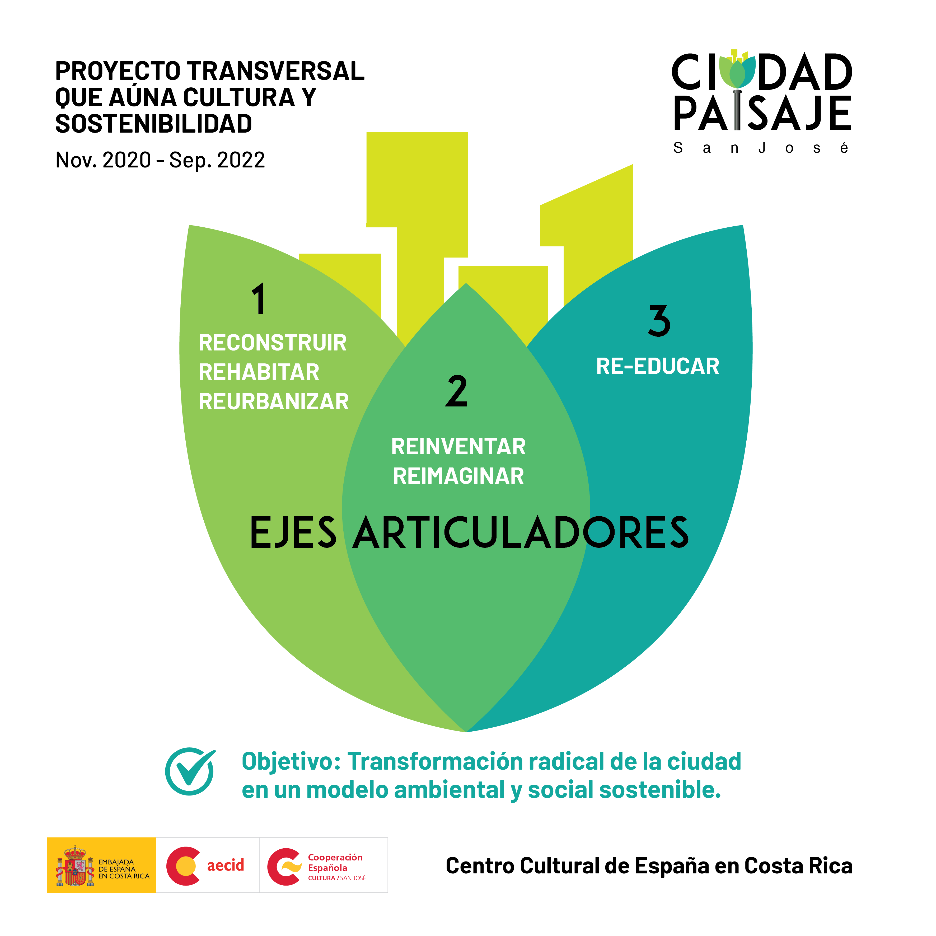 - Poner en valor a San José en el marco del plan de Carbono Cero de Costa Rica, a partir de un proyecto global, de transformación integral a través de las artes, la arquitectura, el urbanismo, la vegetación y el diseño.