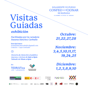 - Visitas guiadas facilitadas por la curadora Susana Sánchez Carballo se realizarán los siguientes días (horario a convenir con los grupos de personas interesadas):