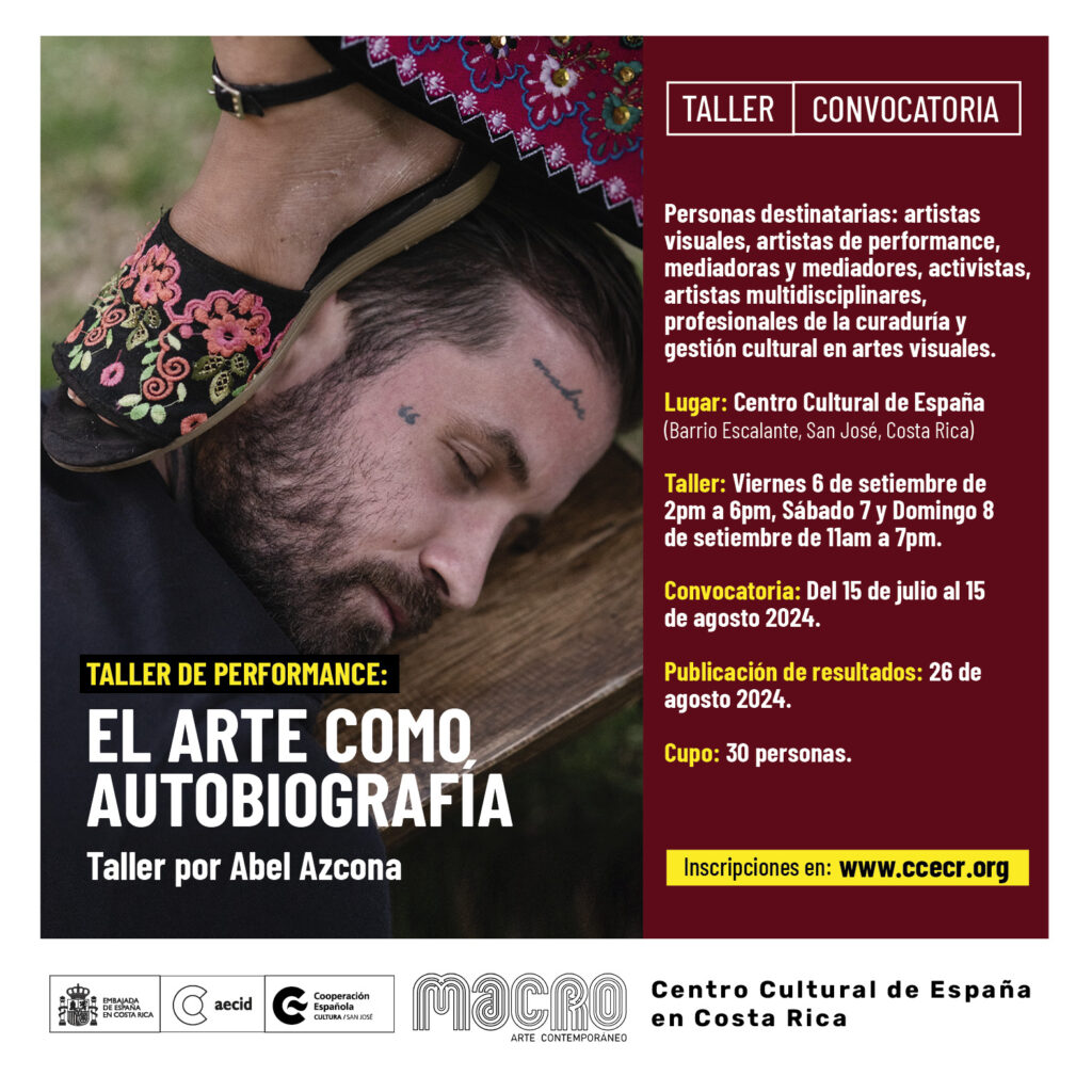 Azcona y su equipo, en colaboración con MACRO, han adaptado este taller para que los participantes profundicen en la teoría y práctica del arte del performance desde una perspectiva biográfica, utilizando el cuerpo, el discurso y la palabra. Los participantes del taller explorarán individual y colectivamente las heridas que han marcado sus caminos de vida, con el trauma como epicentro tanto del taller como del proceso creativo.
