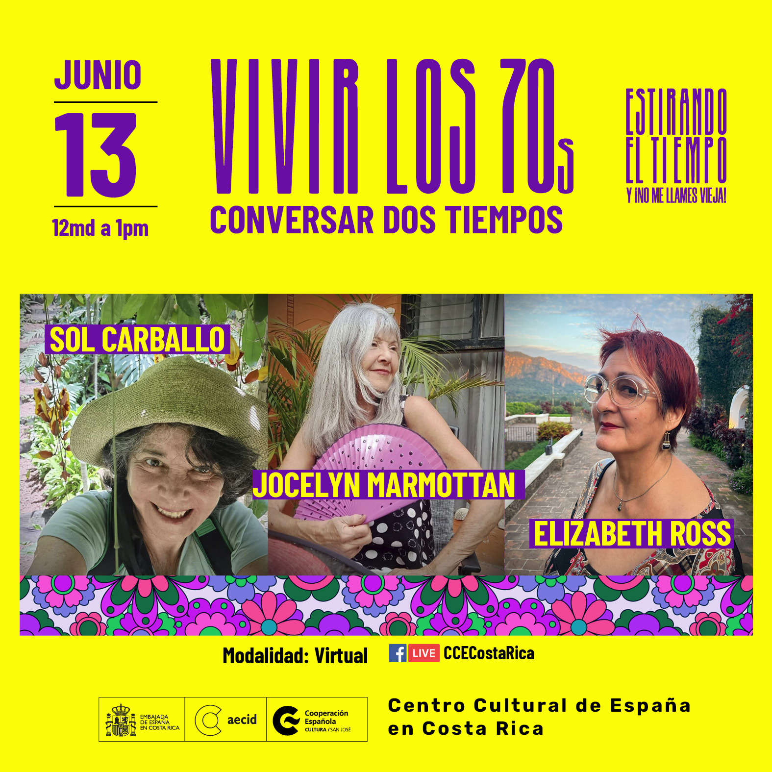 Vivir los setentas se refiere a esa década transformativa del siglo pasado, pero también a la que inició este 2024 para estas tres artistas, una tica, otra catalana y otra mexicana, ya que las tres suben al séptimo piso, habiendo nacido en 1954.