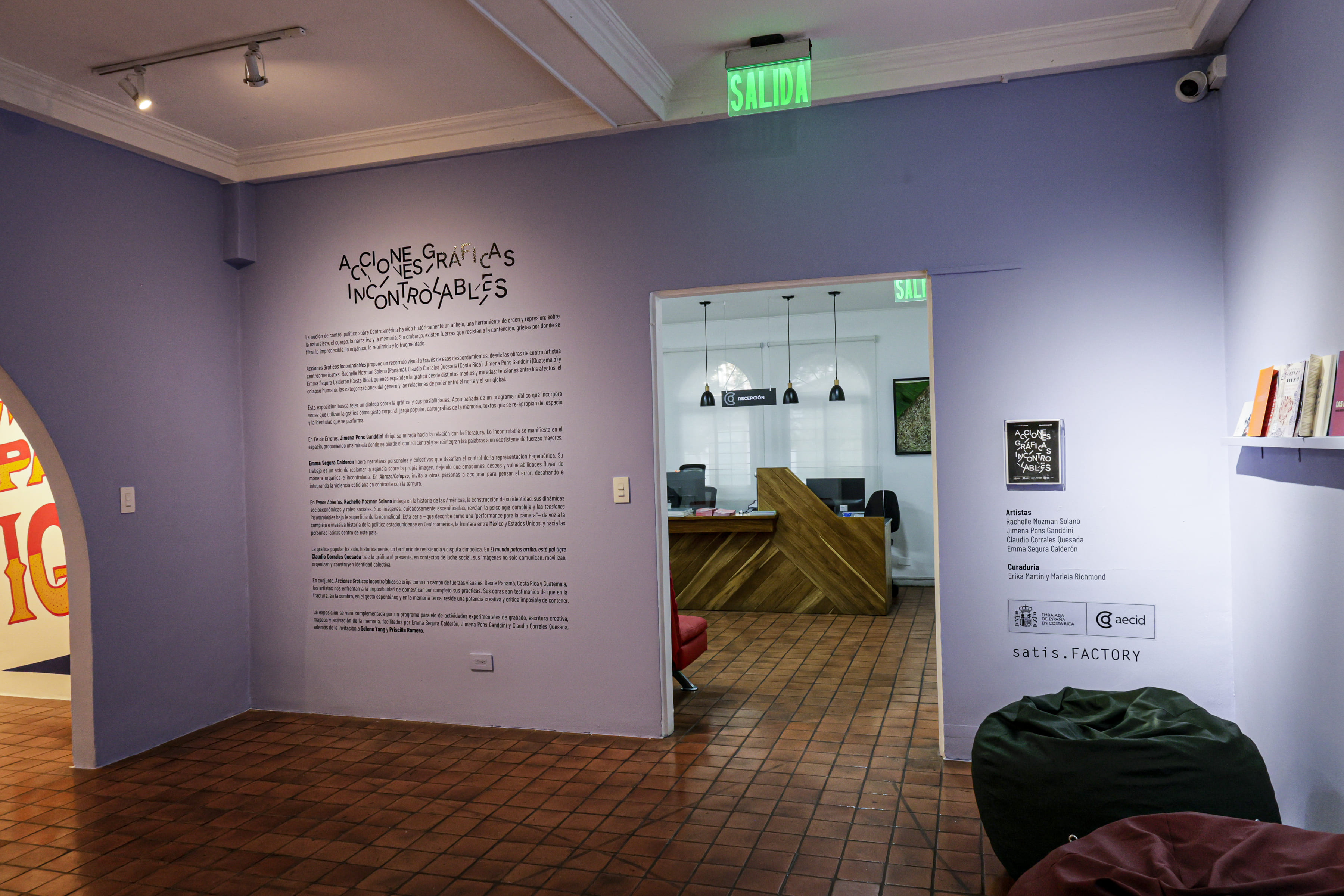 Acciones Gráficas Incontrolables propone un recorrido visual a través de esos desbordamientos, desde las obras de cuatro artistas centroamericanxs: Rachelle Mozman (Panamá), Claudio Corrales (Costa Rica), Jimena Pons Ganddini (Guatemala) y Emma Segura (Costa Rica), quienes expanden la gráfica desde distintos medios y miradas: tensiones entre los afectos, el colapso humano, las categorizaciones del género y las relaciones de poder entre el norte y el sur global.