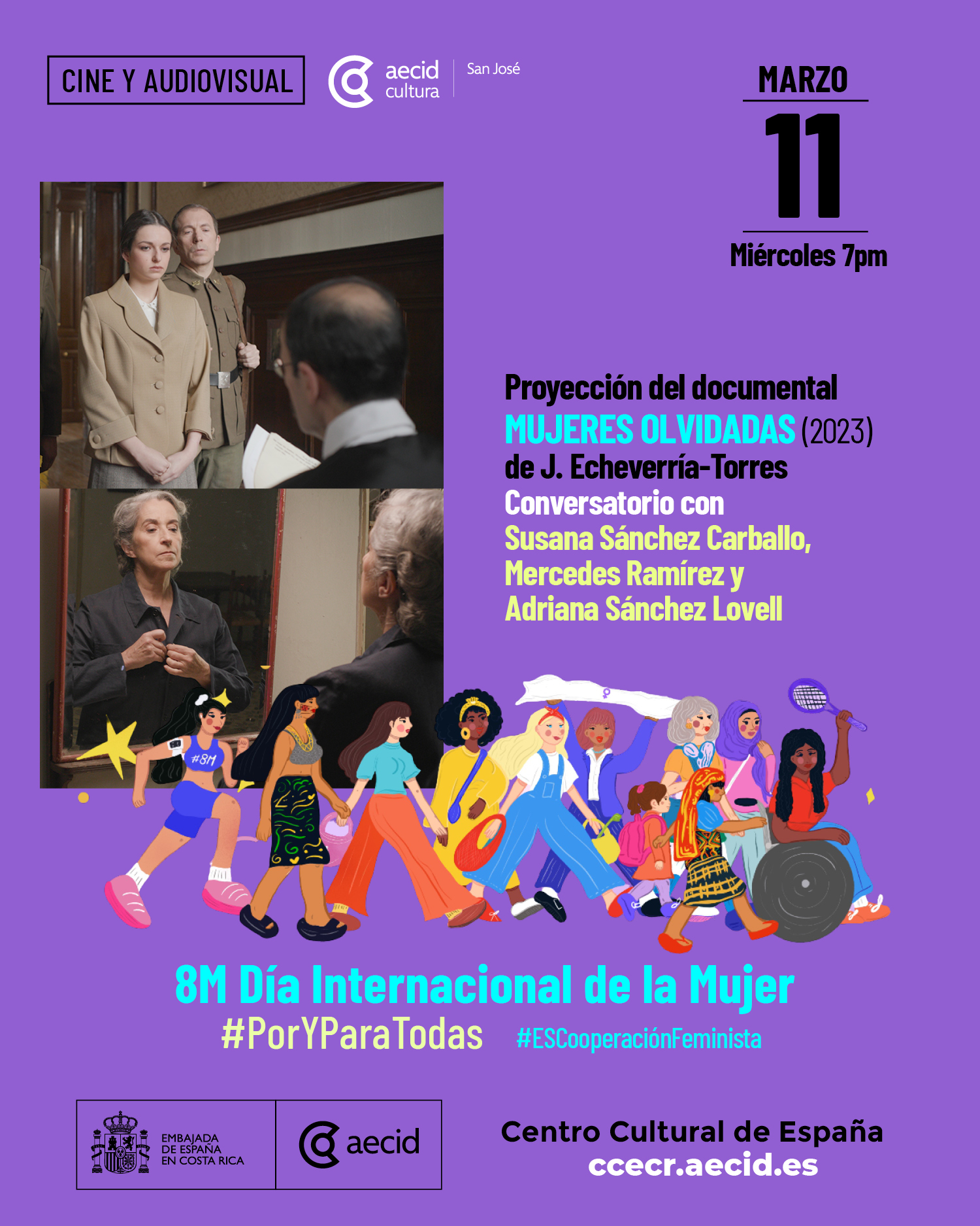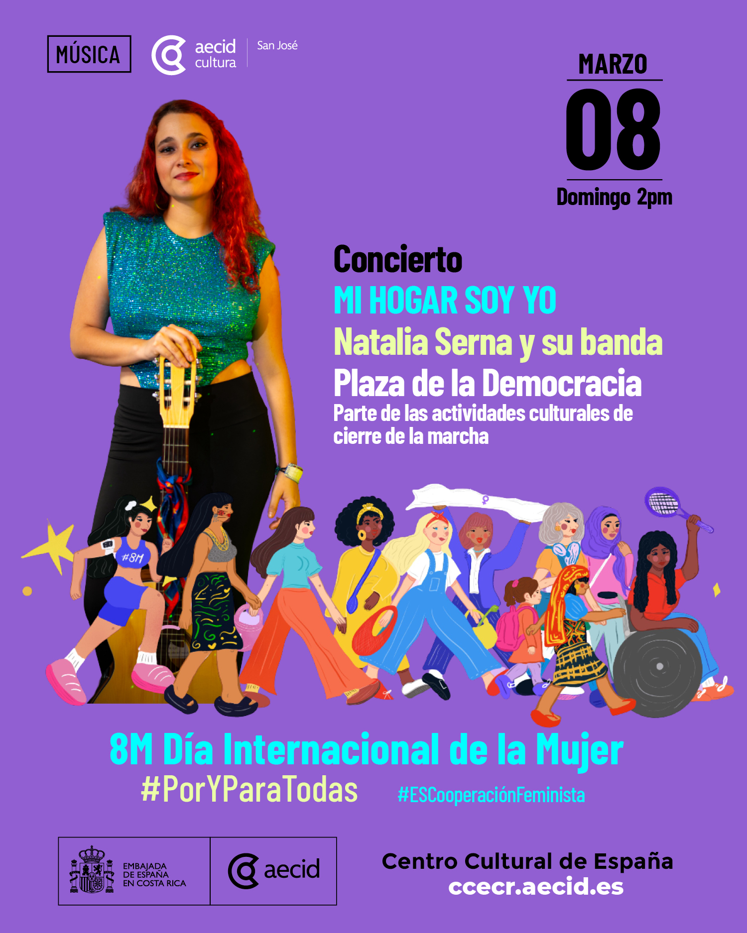 En el marco del Día Internacional de la Mujer (8M), el Centro Cultural de España en Costa Rica presenta una programación especial que reúne música, cine y diálogo. Estas actividades buscan visibilizar historias, reflexiones y expresiones artísticas vinculadas a las luchas y la memoria de las mujeres. La programación incluye un concierto en el espacio público como parte del cierre de la marcha del 8M y la proyección de un documental que recupera la historia de mujeres olvidadas por la historia.
