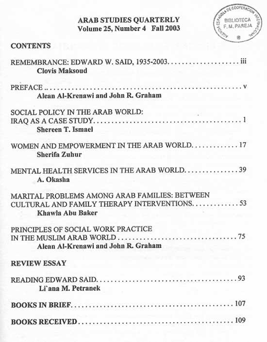 La revista Arab studies quarterly fue fundada en 1979 juntamente por el fallecido profesor Edward Said e Ibrahim Abu-Lughod que tenían la visión de que fuera una plataforma de investigación académica para contraargumentar la propaganda árabe encubierta por una jerga académica. Desde su comienzo se ha considerado como una revista de referencia que publica artículos sobre los árabes, su historia y sus instituciones sociales y políticas. La revista continúa en la tradición de sus fundadores y está comprometida en promocionar un humanismo basado en la investigación contra los discursos orientalistas dominantes en el campo de los estudios árabes e islámicos. Tiene una página web.