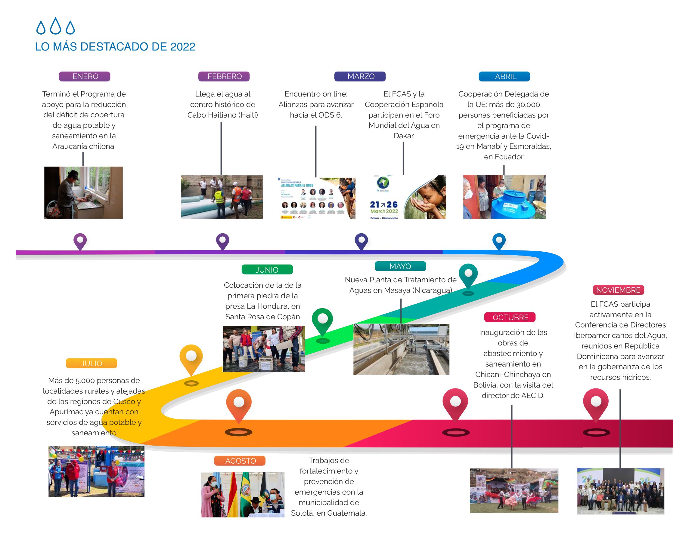 - La Memoria 2022 del Fondo de Cooperación para Agua y Saneamiento (FCAS) recopila de forma gráfica y sencilla el trabajo realizado a lo largo del año.