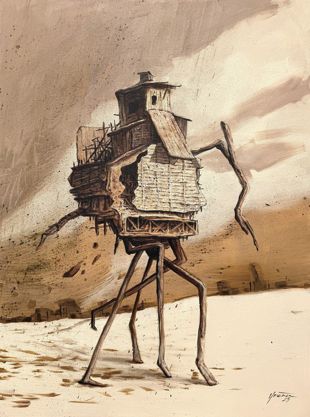 Esta figura, compuesta de caña, tierra y memoria, encarna una arquitectura expulsada de su suelo. No camina por voluntad, sino por desplazamiento. Es una casa que se niega a desaparecer y que, al volverse móvil, resiste su reducción a escombro. Su tránsito evoca tanto la diáspora de métodos constructivos ancestrales como el desarraigo de comunidades afectadas por la gentrificación.